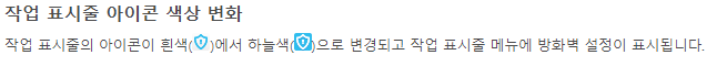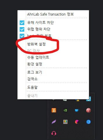 - 하늘색 아이콘이 아니라면 `방화벽 설정`은 옵션에서 보이지 않게됨으로 당황하지 않으셔도 됩니다.