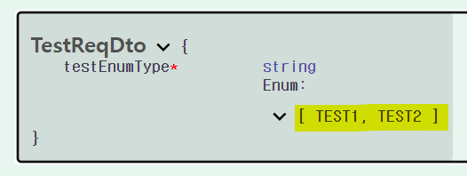 swagger 를 통해 서버의 문서를 작성하던 중 Enum 타입으로 정의한 값을 제공하려 할 때 의도한 값이 문서에 노출되지 않고 Enum 으로 정의했던 변수의 이름이 노출되고 있어 이를 수정하기 위해 시도하였습니다.