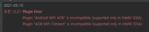 Plugin Error Plugin "Android WiFi ADB" is incompatible (supported only in IntelliJ IDEA). Plugin "Name That Color" is incompatible (supported only in IntelliJ IDEA). Plugin "