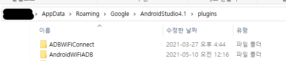 1. `win + e`(파일탐색기) => `ctrl + L`(주소창 선택 윈도우 기준) => `%APPDATA%\Google\AndroidStudio4.1\plugins`